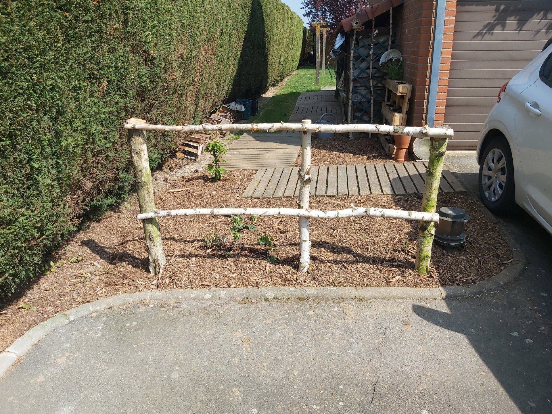 - Accès en paillage délimité par du bois pour les potagers,